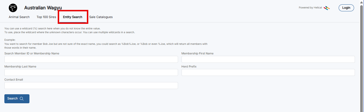The Member Search page works in a very similar way to the animal search with a wildcard function available to assist with your searches.